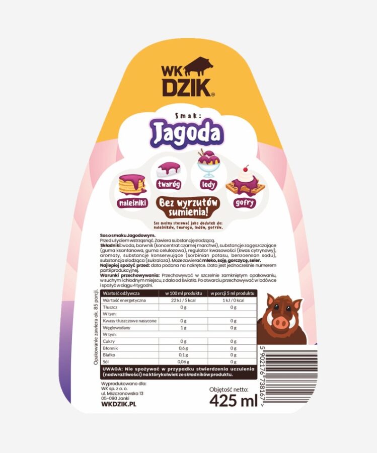 Najważniejsze jest jednak to, że sos dzika powstał bez dodatku cukru, bez tłuszczu i nie posiada kalorii! Może być stosowany przez diabetyków i wszystkich, którzy chcą wyeliminować lub ograniczyć cukier w swojej diecie. Każdy składnik Sosu Zero Jagoda jest dokładnie przebadany i nie zagraża zdrowiu człowieka. Możesz więc w bezpieczny, łatwy i niesamowicie smaczny sposób urozmaicić swoją dietę – nawet tą najbardziej restrykcyjną.
